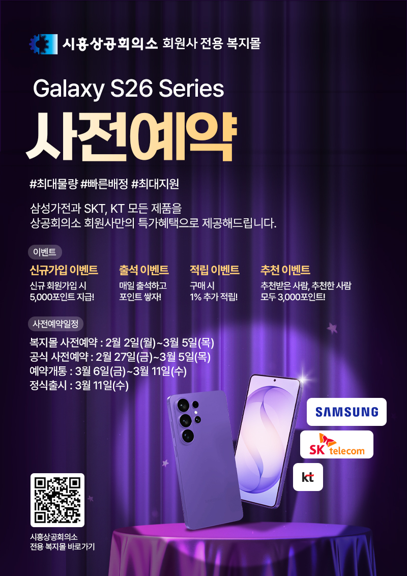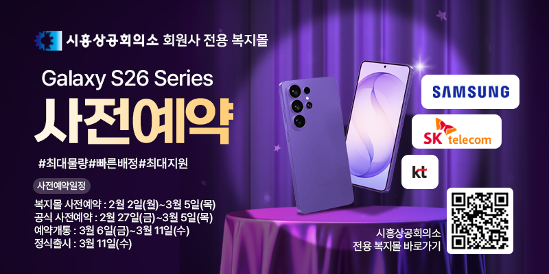 | ‒ | 2025년 시흥상공회의소&삼성전자 제휴 회원사 전용 복지몰 Galaxy S26 Series 사전예약 |