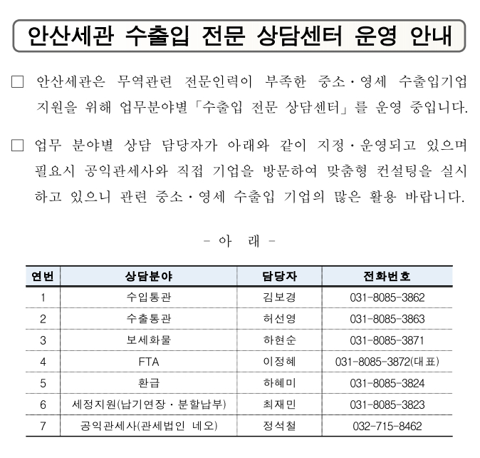 | ‒ | 2026년 안산세관 「중소기업 수출입전문 상담센터」 홍보 |