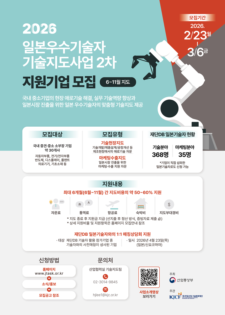 | ‒ | 중소ㆍ중견기업 대상 현장형 기술지원(일본우수기술자 활용) 정부 프로그램 안내 |
